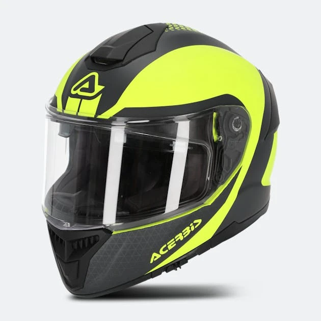 Casco integrale in fibra composita, leggero, confortevole e ben ventilato. È dotato di prese d’aria centrali nella parte superiore e anteriore che possono essere aperte e chiuse con un cursore. La visiera esterna è rimovibile, regolabile e resistente ai graffi e la fodera è rimovibile e lavabile.