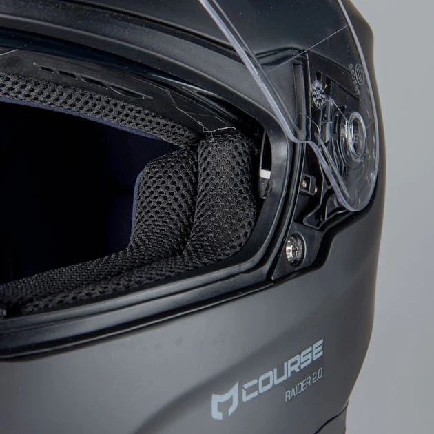 Il Course Raider 2.0 è un nuovo casco integrale disponibile in due diverse misure di calotta e vari fantastici colori. È dotato di una visiera predisposta per Pinlock® a sgancio rapido e visierino parasole a scomparsa facilmente azionabile.