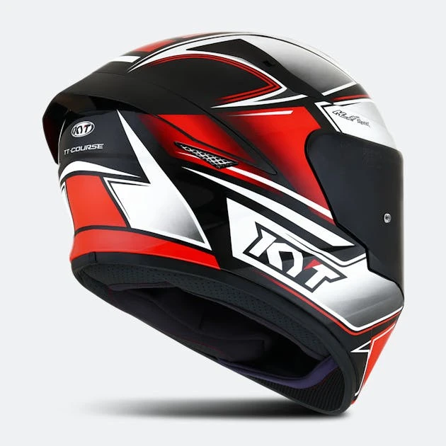 Il TT Course di KYT è un casco integrale con una forma che nasce direttamente dalla galleria del vento ed è progettato in collaborazione con ingegneri aeronautici per ottenere le migliori prestazioni senza trascurare lo stile o l’ergonomia. Il casco ha un sistema di aggancio e rotazione che permette di rimuovere la visiera, trattata antigraffio e antiappannamento, senza l’ausilio di attrezzi. L’interno protettivo in polistirolo, disponibile in due taglie (M e L), contribuisce ad un graduale e progressivo assorbimento dell’energia prodotta in caso d’impatto.