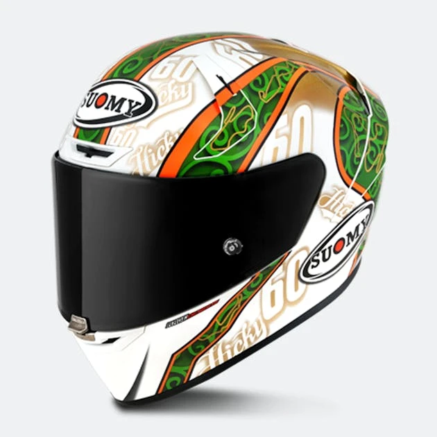 Il Suomy SR-GP è un casco da racing che offre alte prestazioni, portando gli standard a nuovi livelli. Il design, sintesi di uno studio approfondito e mirato al raggiungimento delle massime prestazioni, è stato realizzato con il contributo cruciale dei piloti di alto livello della MotoGP e della Road Racing. La straordinaria efficienza aerodinamica, il sorprendente campo visivo verticale e periferico, la ventilazione estremamente efficiente, l’ergonomia mirata a non affaticare il pilota, la visiera di classe ottica 1 a spessore variabile e la Pinlock® 120 Max Vision, rendono l’impressionante SR-GP un punto di riferimento nel mondo del racing.