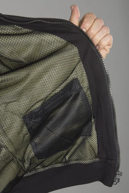 • Tasche per poter inserire protezioni su gomiti e spalle (protezioni incluse)