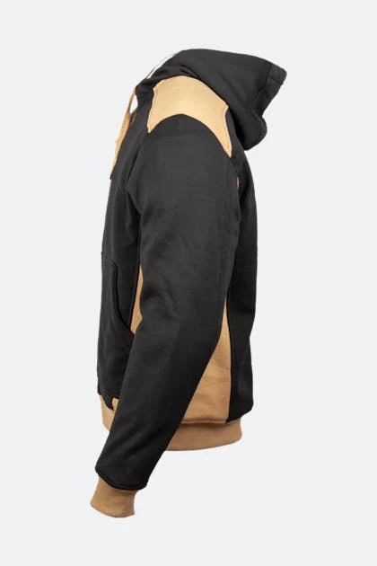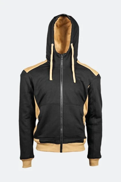 La felpa con cappuccio Grizzly di GMS può sembrare una felpa normale ma è progettata per la guida. È realizzata in misto cotone e poliestere, con fodera interna e fodera protettiva in fibra aramidica. Il cappuccio ha un cordoncino regolabile ed è rimovibile, quindi è una felpa può essere indossata anche senza. Ha protezioni su gomiti e spalle ed ha una tasca predisposta per poter inserire il paraschiena.
