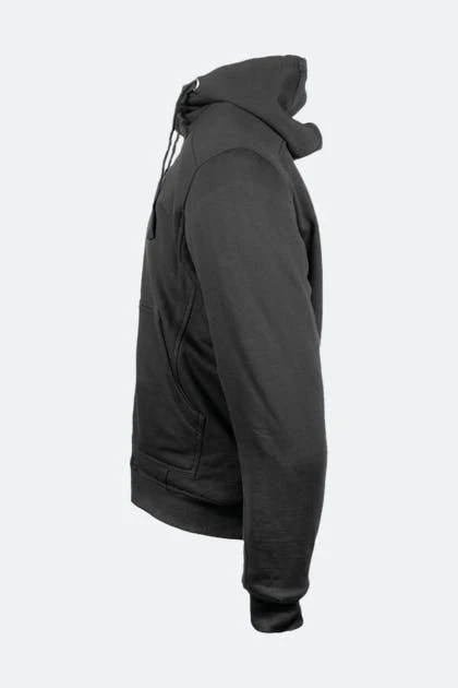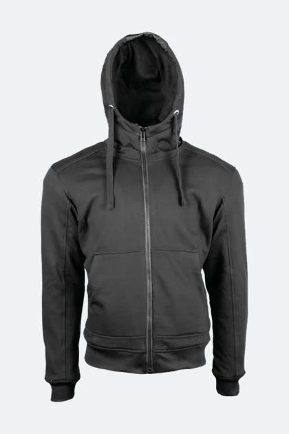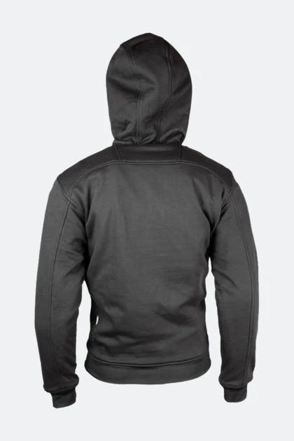 La felpa con cappuccio Grizzly WP di GMS può sembrare una felpa normale ma è progettata per la guida. È realizzata in misto cotone e poliestere, con fodera interna e fodera protettiva in fibra aramidica. Ha anche una membrana REISSA® impermeabile, antivento e traspirante per mantenerti all’asciutto e il cappuccio ha un cordoncino regolabile ed è rimovibile per poterla indossare anche senza. Ha protezioni su gomiti e spalle ed ha una tasca predisposta per poter inserire il paraschiena.