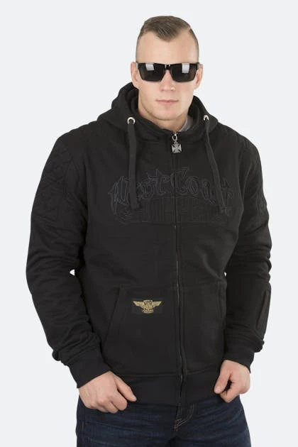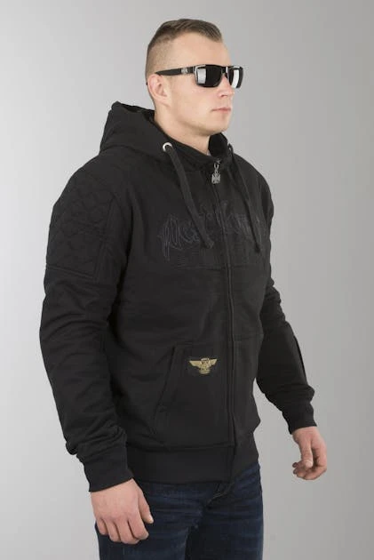 Felpa con cappuccio da moto di West Coast Choppers che offre un’ottima protezione e allo stesso tempo uno stile eccezionale. All’esterno sembra una semplice felpa in cotone, ma all’interno ha sia la membrana traspirante e impermeabile Reissa® che uno strato di fibra aramidica DuPont™ Kevlar®.