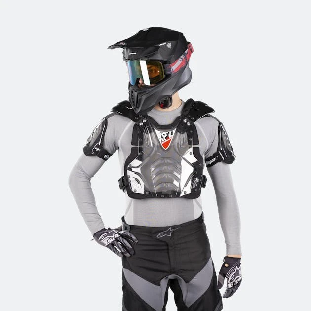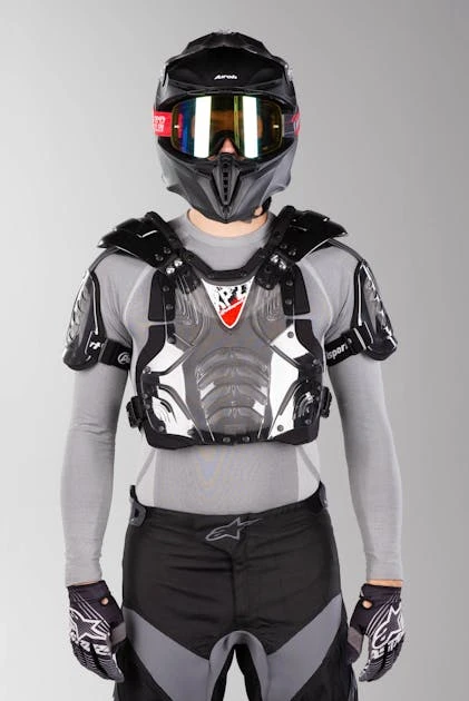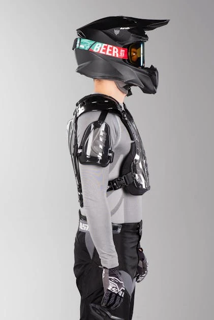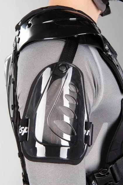 È una protezione toracica leggera ed elastica con protezione extra per le spalle e per il braccio. La giacca è realizzata con parti in plastica dura e ventilata per proteggerti pur lasciando circolare molta aria.