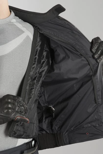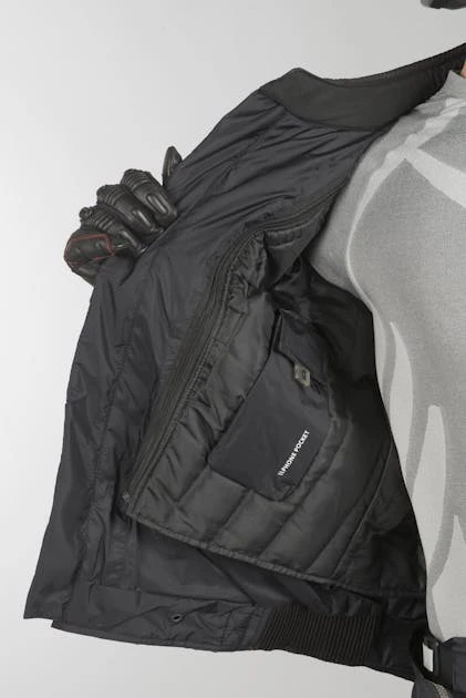 In caso di incidente, la calotta esterna in poliestere molto resistente protegge adeguatamente. Inoltre, la giacca è dotata di protezioni D30 sulla schiena, spalle e gomiti, un materiale morbido fino a quando non viene esposto a un impatto; quindi si indurisce all’istante e offre un’ottima protezione. – Protezioni su gomiti e spalle omologate EN 1621-1: 2012 e paraschiena omologato EN 1621-2: 2014