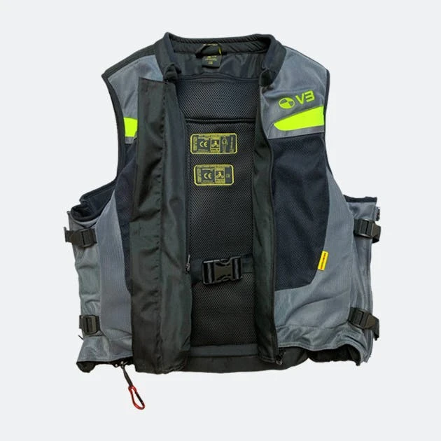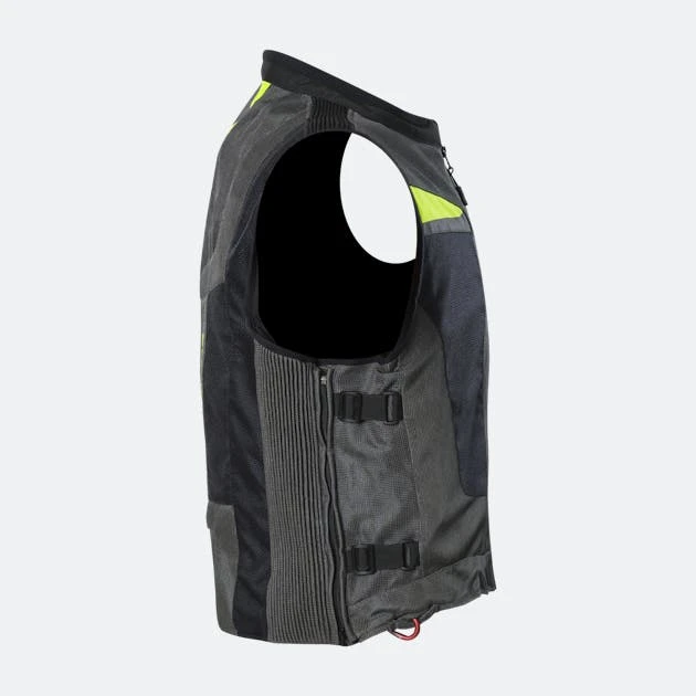 Airbag moto MotoAirbag MAB v3 per la massima protezione durante la guida. Protezione antiurto su petto, collo, schiena e coccige. È realizzato in poliestere di alta qualità con inserti riflettenti per una maggiore sicurezza. È facile da usare, basta metterlo sopra la giacca da moto invernale o estiva e regolare le cerniere e i cinturini.