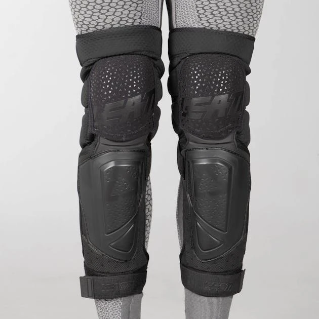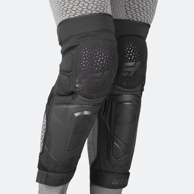La ginocchiera Leatt 3DF Hybrid EXT approvata CE (EN 1621.1) è composta da uno strato composito superiore in plastica dura che copre anche lo stinco. I lati sono dotati di schiuma antiurto 3DF AirFit che si indurisce in caso d’impatto. La funzione antiscivolo e la forma ricurva aiutano a mantenerla in posizione. Dotata di elastici e di stampe in silicone.
