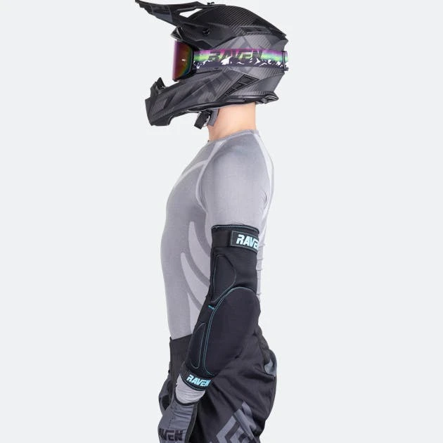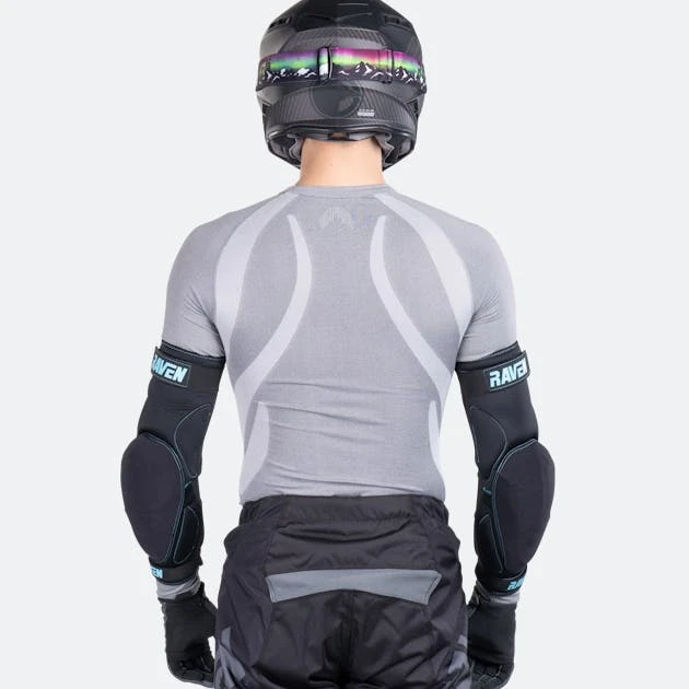 Le Raven Rine sono leggere gomitiere in PU alloggiate all’interno di una manica in lycra resistente all’abrasione, fissata in posizione con doppie cinghie elastiche.