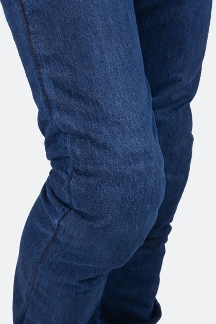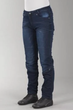 I jeans sono rinforzati con fibra aramidica su seduta e ginocchia e sono dotati di protezioni su ginocchia e fianchi.