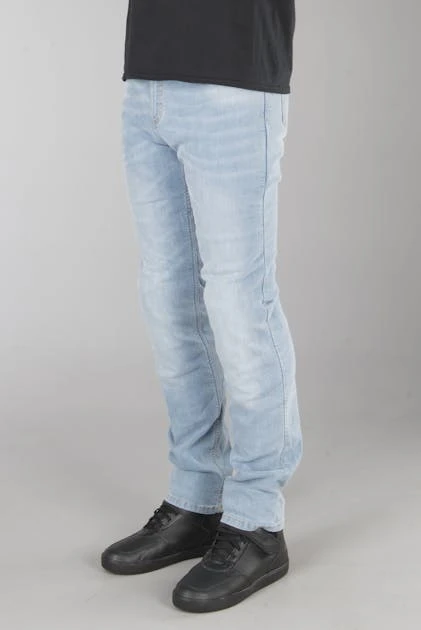 I jeans sono rinforzati con fibra di aramide Dupont ™ Kevlar® intorno alle aree più soggette a usura. Le protezioni per le ginocchia D3O® sono morbide e flessibili ma si induriranno istantaneamente all’impatto.