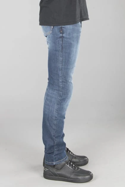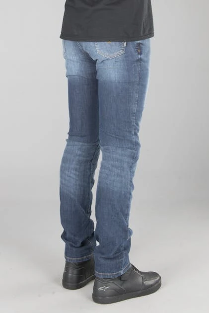 I jeans sono rinforzati con fibra di aramide Dupont ™ Kevlar® intorno alle aree più soggette a usura. Le protezioni per le ginocchia D3O® sono morbide e flessibili ma si induriranno istantaneamente all’impatto.
