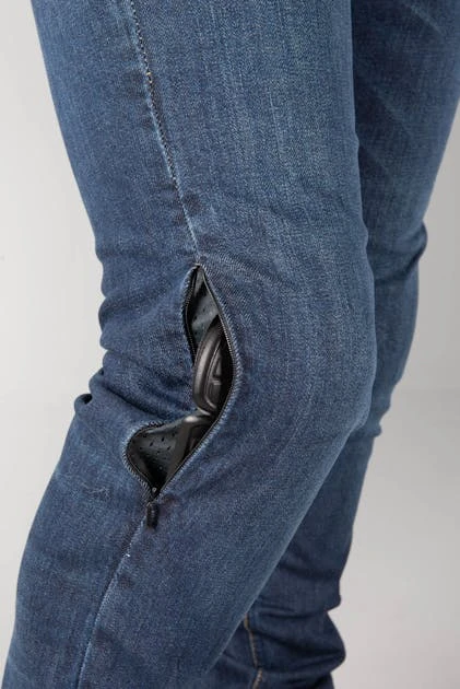 I jeans sono realizzati in cotone elasticizzato con rinforzi in Cordura estremamente resistente. Questo li rende più confortevoli quando si è in posizione di guida, senza compromettere la sicurezza. Hanno anche la protezione del ginocchio Warrior Lite regolabile con approvazione CE (1621.1).