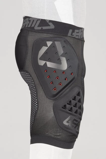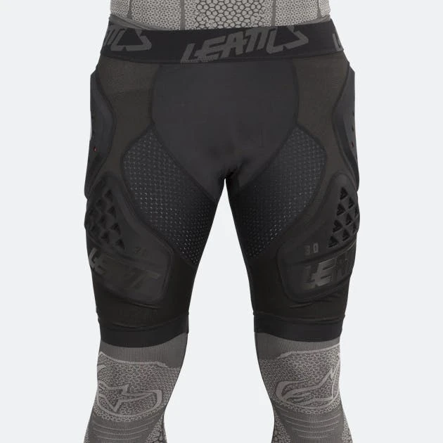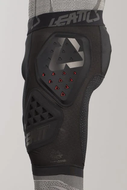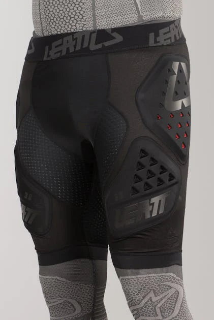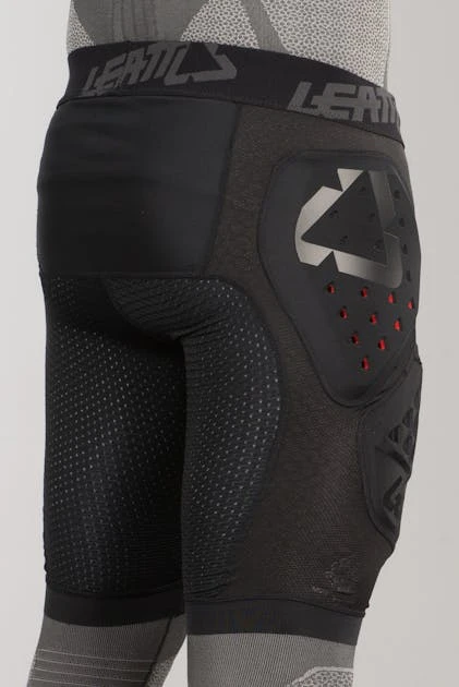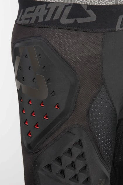 Shorts a compressione di Leatt con protezioni sui fianchi.