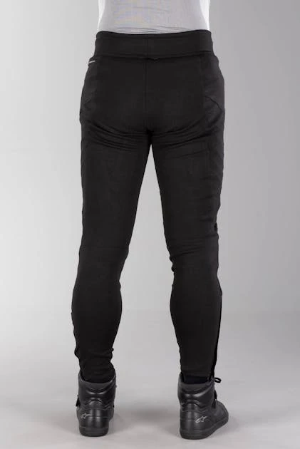 Sono realizzati in resistente denim e tessuto elasticizzato rinforzato con fibra aramidica. Sono dotati di protezioni Knox sulle ginocchia omologate EN 1621-1:2012 che sono anche regolabili in altezza per poterle adattare nella posizione corretta e sono inoltre predisposti per poter inserire protezioni sui fianchi (vendute separatamente).