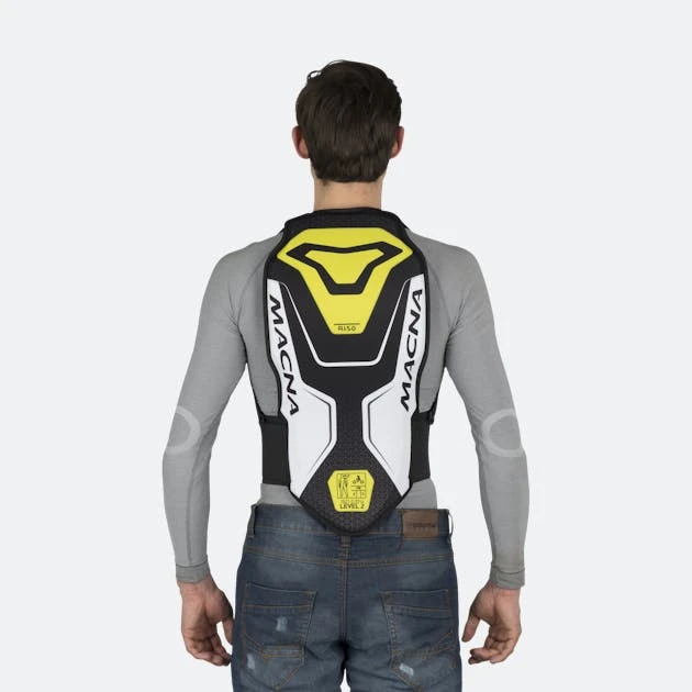 Il modello è alto 185 cm, pesa 84 kg e indossa un paraschiena in taglia Large.