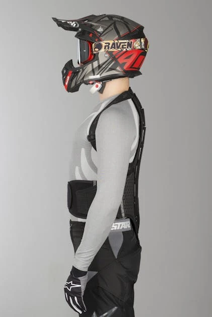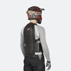 È fabbricato in E.V.C. (Evoluted Viscoelastic Cells), innovativa gomma idrorepellente anti-shock ad alto rapporto performance/peso/spessore. Le scocche sono congiunte da un sistema lamellare che garantisce la distribuzione del colpo in tutta la superficie della protezione. Questo paraschiena segue i movimenti naturali della schiena e ha un’ampia cintura renale che lo mantiene saldamente in posizione.