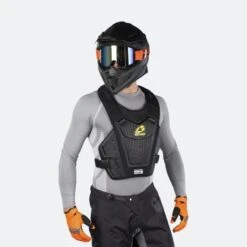 La protezione ha un interno di bioschiuma che funge da barriera ammortizzante, fornendo una sensazione piacevole e confortevole. Piastra frontale in policarbonato modellato che fornisce la massima resistenza all’impatto. Vestibilità completamente regolabile per adattarsi e fornire protezione a piloti di tutte le taglie.