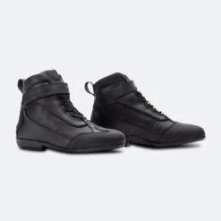 Le scarpe da moto Stunt-X WP di RST sono stivali bassi ma con tutte le caratteristiche di un tradizionale stivale resistente, con tallone e punta rinforzati e protezione integrata sulla caviglia. Le Stunt-X sono inoltre dotate di una membrana impermeabile SinAqua per mantenere i piedi asciutti e di una struttura in microfibra traforata su ciascun lato per migliorare la traspirabilità. Per una maggiore sicurezza, il sistema di chiusura con lacci e velcro è dotato di uno scomparto per riporre le estremità dei lacci per evitare che si impiglino nella moto.