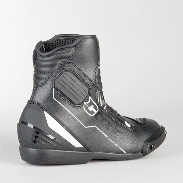 Gli stivaletti hanno solidi rinforzi intorno ai talloni, un puntale protettivo e rinforzi sulle caviglie che distribuiscono efficacemente eventuali impatti. Gli sliders sostituibili sulla punta consentono di inclinarsi con sicurezza nelle curve senza doversi preoccupare dell’usura che potrebbe causare il contatto con l’asfalto.