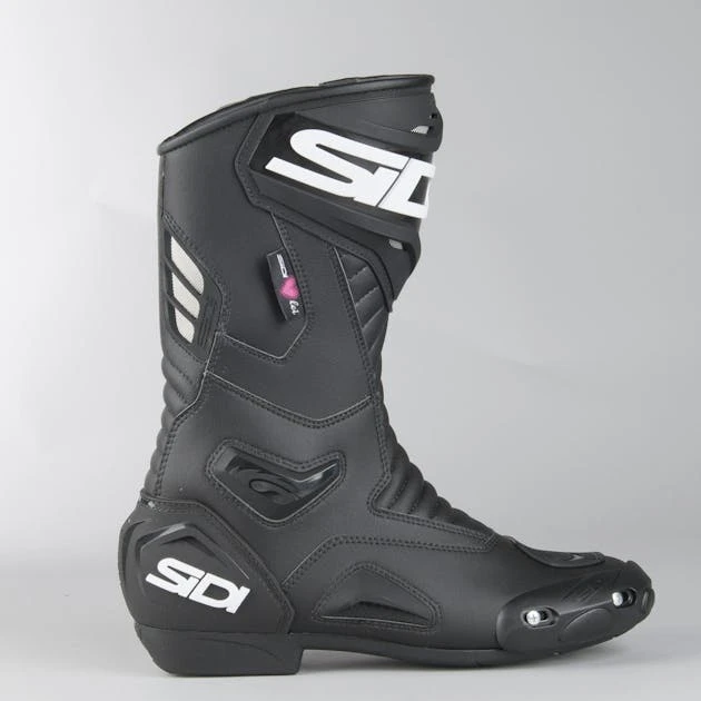 Sidi non ha risparmiato sull’uso di tecnologia nella creazione di questi stivali. Sono dotati di piastre fisse con condotti d’aria nella tibia, saponette intercambiabili sulle dita e imbottitura sulla caviglia. L’esterno è realizzato in microfibra pieno fiore Technomicro, un materiale con caratteristiche simili alla pelle ma più forte e più resistente all’acqua.