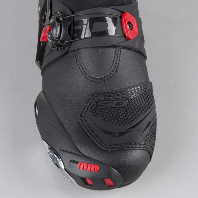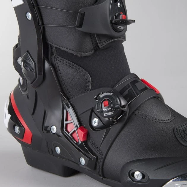 La prima cosa che noterai di questi stivali sono le tre fibbie separate che consentono una calzata ottimale. Un’altra caratteristica è la protezione rinforzata della caviglia in fibra di vetro che è integrata con la protezione del tallone, anch’essa migliorata. Queste creano uno stivale incredibilmente forte ma che non rimarrà bloccato nell’asfalto in caso di incidente.