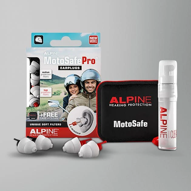 Gli Alpine MotoSafe Pro sono due set completi di tappi da moto per le orecchie. Un set di tappi e MotoSafe Tour con media attenuazione del rumore e un set MotoSafe Race con forte attenuazione. I tappi MotoSafe Tour sono ideali ad esempio per touring, vacanze e in autostrada. I tappi MotoSafe Race sono ideali per l’autostrada, il circuito o con un casco aperto.